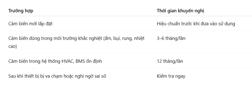 Việc kiểm tra cảm biến nên được thực hiện theo các mốc thời gian hoặc điều kiện cụ thể: